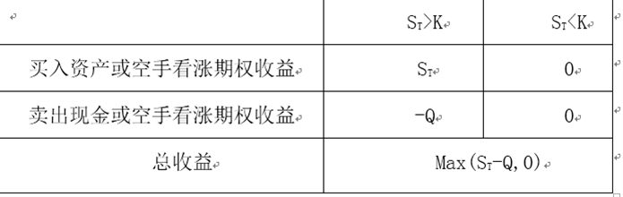 比如说买入资产或空手看涨期权,同时卖出现金或空手看涨期权可以构造出一个普通的看涨期权:看下图