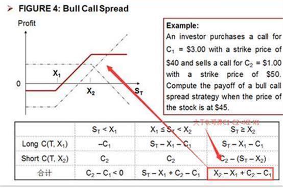 A:相同期限的美式看涨期权之间的价格差异不会超过它们执行价格之间的差异(我们用价差原理去分析:因为无红利的American call和European call是一样的。综合下面这个图形,A选项正确)