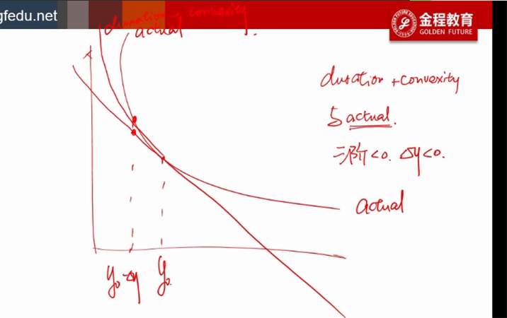duration对价格的影响是线性的(即债券价格的切线):所以他确定出来的价格变动是小于full pricing