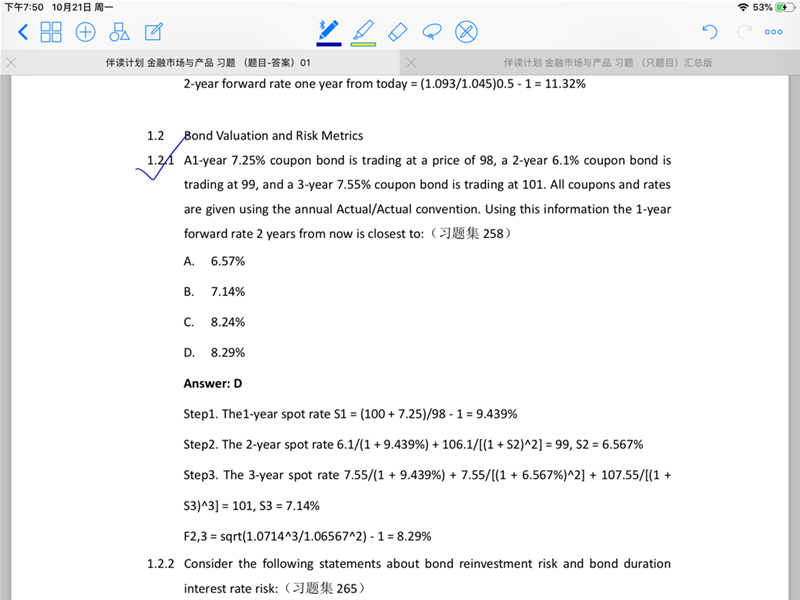 注意最后的远期利率的计算应该使用的是一般复利的形式