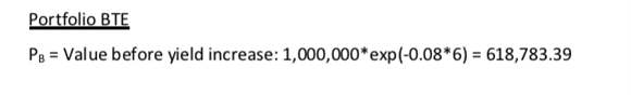 老师好,这个题我在算bte pv 的时候为什么用 计算器方法( pmt=0,n=6,fv=1mil,i/y=8 ,求出pv=-630169)与 直接算pv=1mil*e-8%*6=618783有差异呢, 计算器的方法应该也是可以的吧