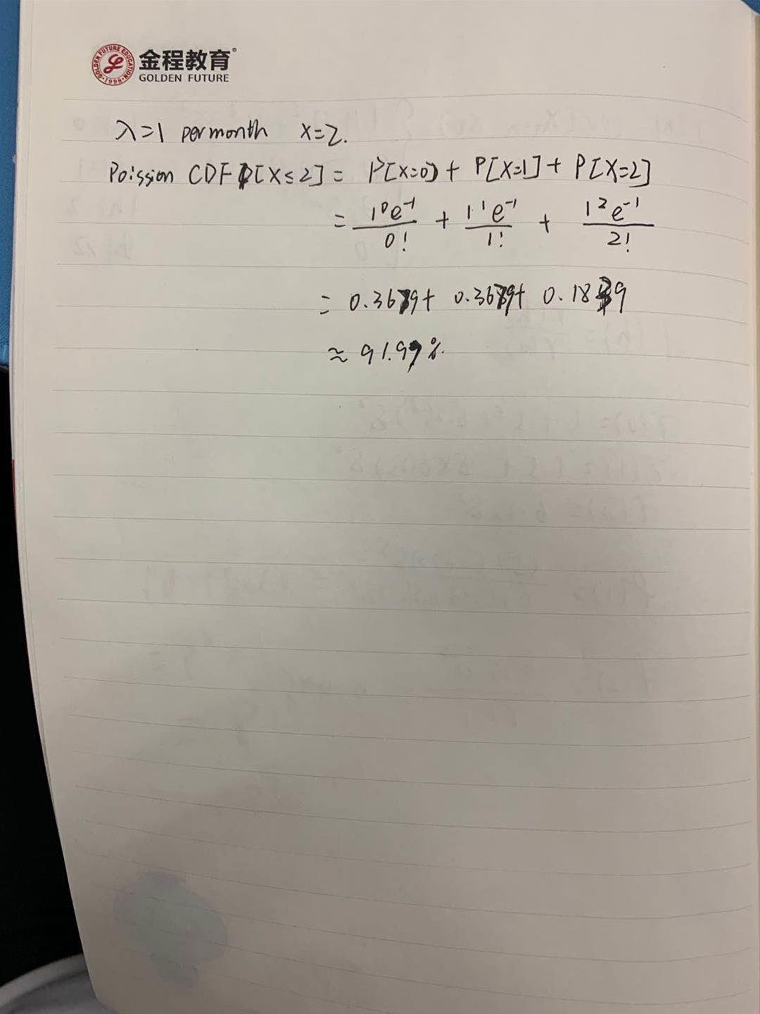 同学你好,关于这个问题的具体解题步骤写在附图里面,这样看起来会比较清晰。这个题目就是考察泊松分布的公式应用,只用到附图中用到的变量,希望可以帮助到你哦。