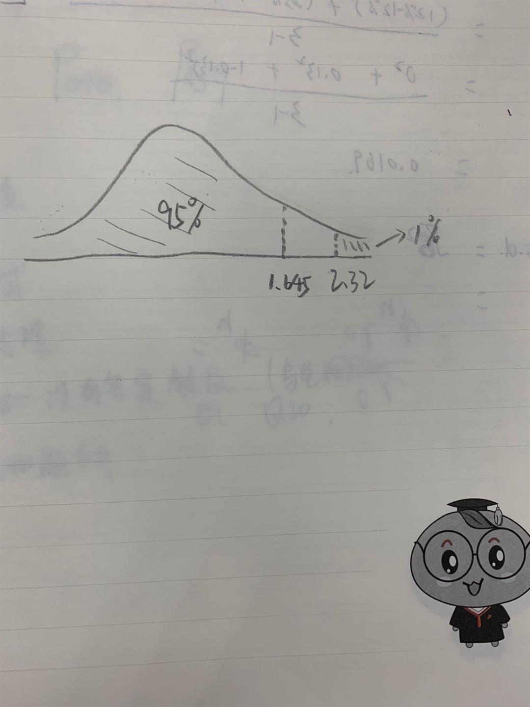 同学你好,关于这个问题可以这样理解,当z值大于1.645时,比如2.32,在附图中可以看到,它是落在95%的置信区间之外的,所以我们在95%的置信水平下拒绝原假设。这个是我们用z检验判断是否拒绝原假设的规则,是需要记住的。