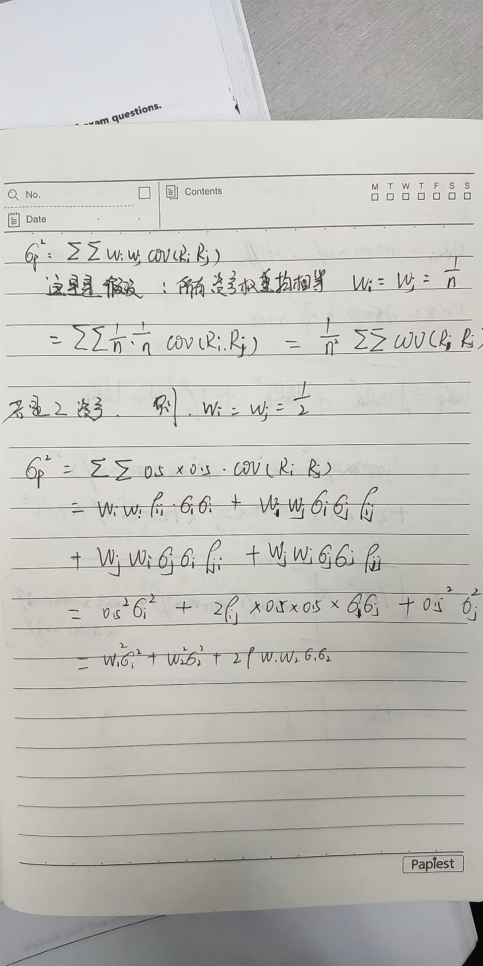 同学你好,这里是有前提假设的:所有资产的权重都相等。