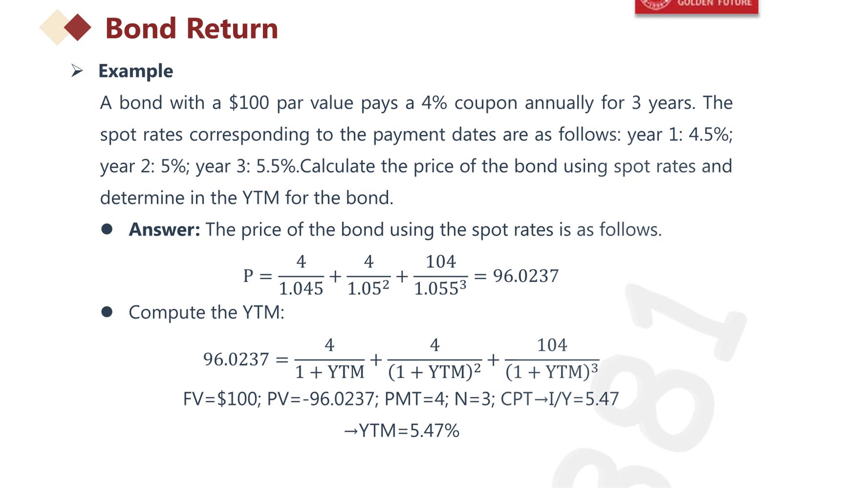 就像我截图的,ytm应该是最靠近最后一期的spot rate的