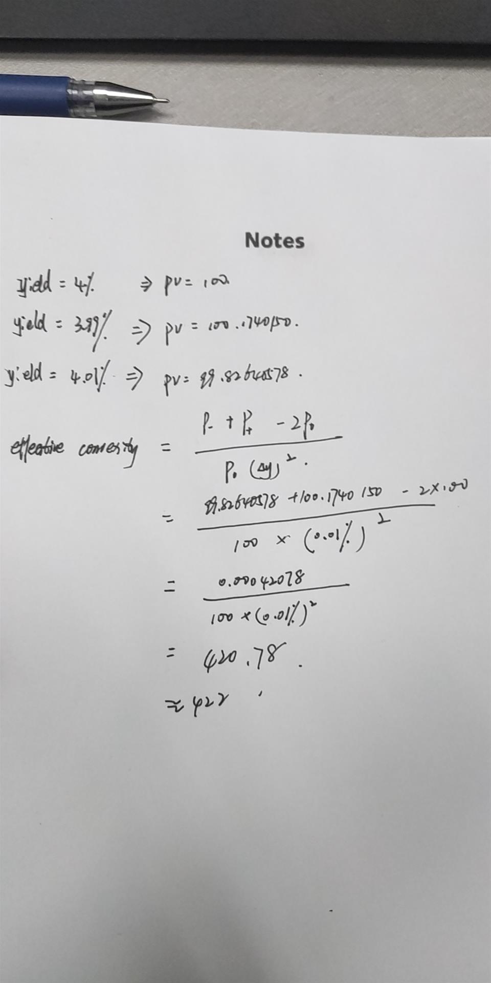 同学你好,可以算出来的。有效凸性是凸性的近似估计。你的公式列错了