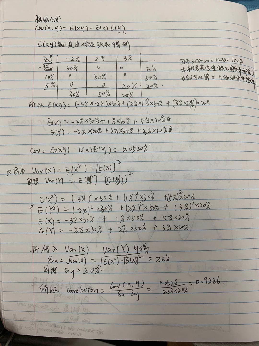 同学你好,这道题问的是相关系数,根据我们之前学的公式ρ=cov(x, y)/σ(x)σ(y), 所以接下来需要一步一步求出这3个数代入公式。为了更清晰地列出步骤,接下来的解题过程用图片形式展示,如果哪里不清楚的欢迎追问。