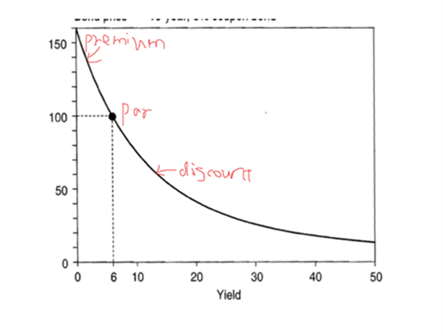 同学你好,一种方法是可以画出债券价格和收益曲线关系图,当收益率上升的时候,债券价格从左至右是逐渐下跌的,也就是说从左至右对应的是溢价-平价-折价债券,而他们的斜率也是在慢慢下降的,斜率就是美元久期,美元久期的变动和DV01是一样的,所以DV01是在慢慢下降的,所以这道题选B。如图1