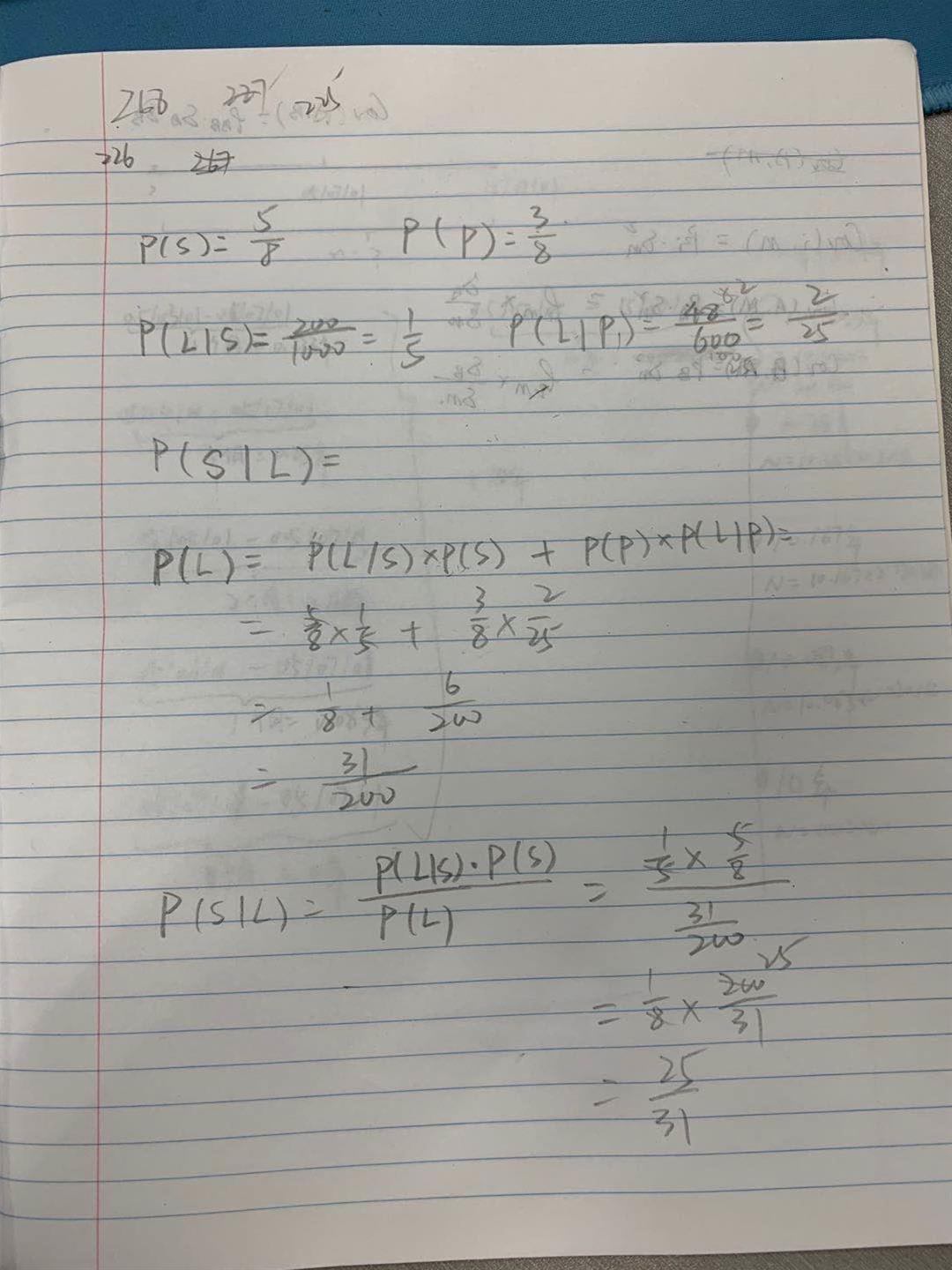 你好老师 这个题硬套贝叶斯算不出来 反而200/200+48轻松算出来 请问用贝叶斯怎么算 另外这种200/248算法可以吗