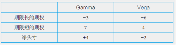 对于gamma来说期限越短越大,越长越小。我张文丽举个例子:期限短的 gamma=7,期限长的 gamma=3;对于 Vega,期限越长越大,在此处令期限短的 Vega=4,期限长的Vega=6;买入期权对应的是“+ ”,卖出期权对应的是“-”号。若要满足题目的要求,如下: