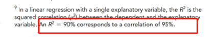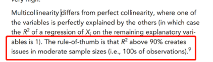 同学你好,Any这里是指,存在多重共线性时,是无法估计任何一个准确的系数,这个说法是不对的,只要不是完全共线性,问题就不大,还是可以得到一个比较准确的系数。相关性如果是1的话,那就是完全共线性。相关性和多重共线性的说法并没有一个绝对的版本,但FRM考试还是以原版书的说法为准,也就是附图中的,如果两个随机变量之间的回归的R方在90%以上(对应的相关系数为0.95),那么就很可能存在多重共线性的问题。其他的说法并不在FRM教材内,不要求掌握。