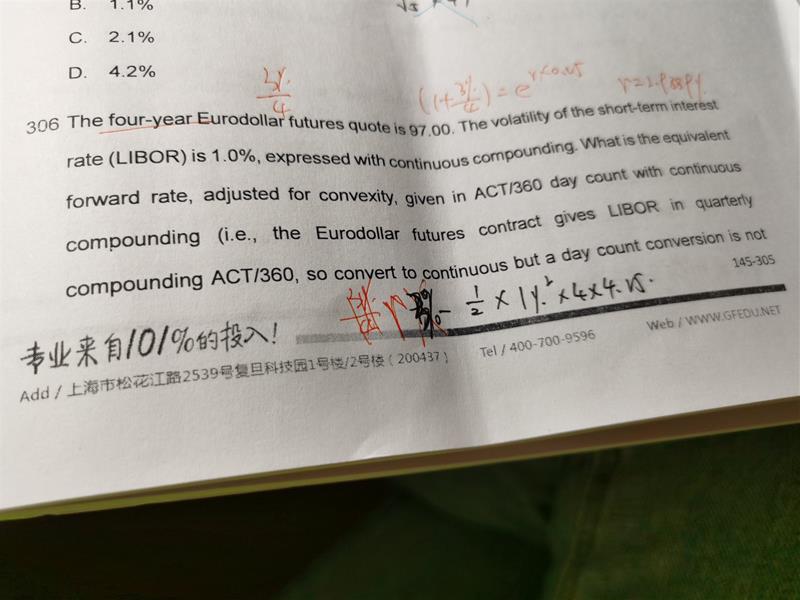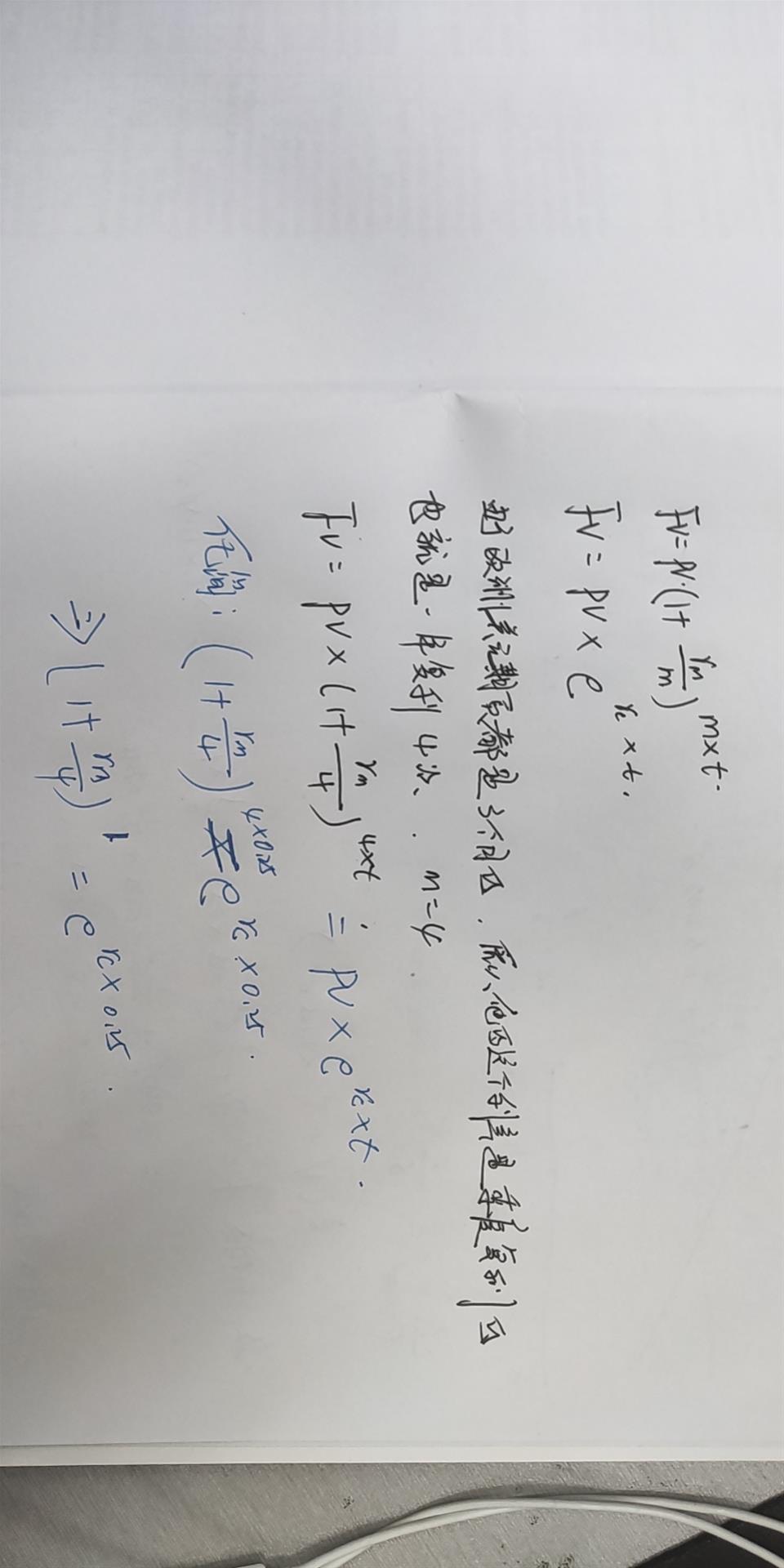 还有306这样的利率换算,不太能看懂答案列的求r的公式,题目告诉了4年的,那么一年就是3%/4,换算成三个月不是应该×0.25吗?为什么要用普通复利=连续复利的公式呢?