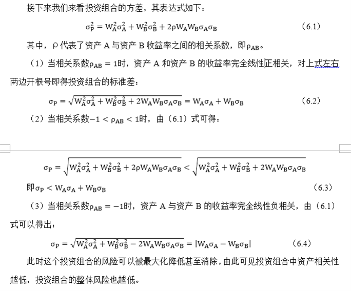 相关性越低,整个组合的标准产越小,因此风险越小。