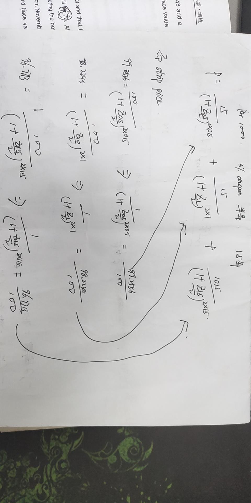 然后再把要求的债券式子累出来,就会发现,其实这四个即期利率根本不用求,将零息债券的式子转换一下就能直接带入,减少了不少的计算量。