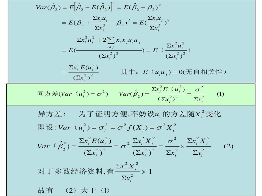 同学你好,异方差的存在会使系数的方差增大,进一步增大系数标准误,从而影响了t检验统计量。具体证明过程见附图,因为不在考纲要求范围内,所以简单参考即可。