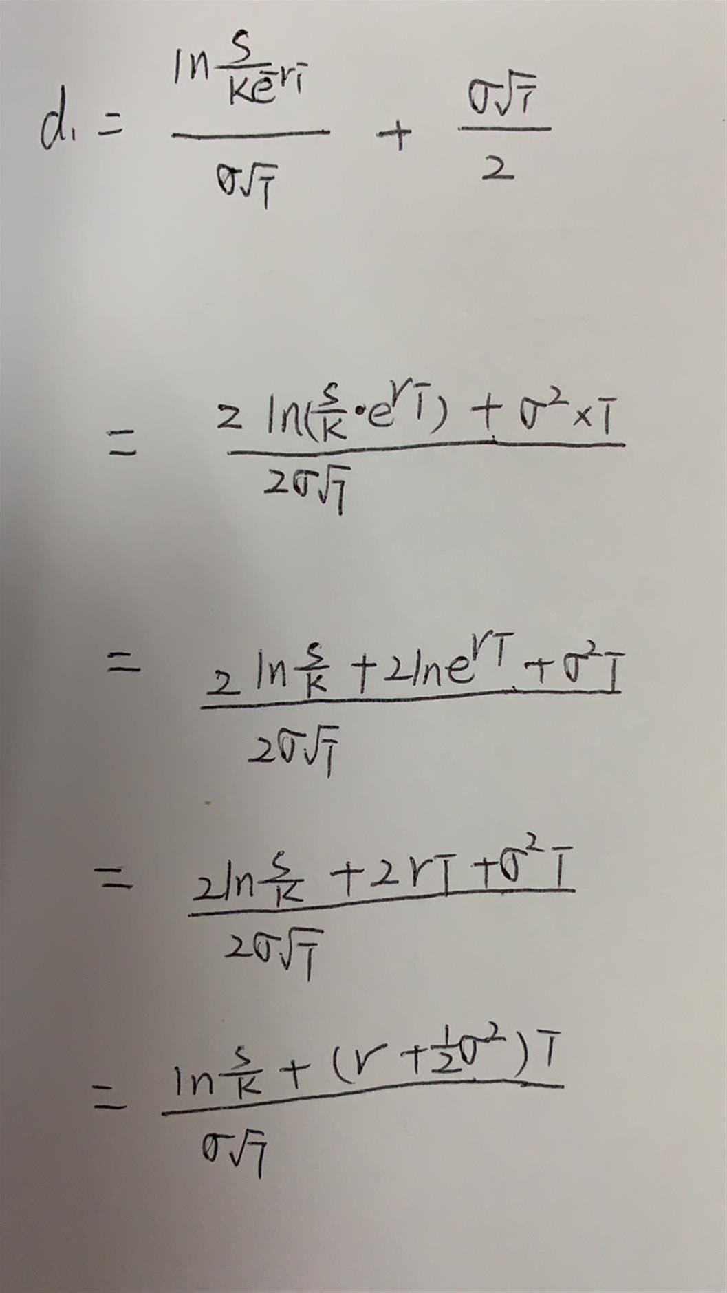 老师,请问bsm定价公式里,d1的公式,分子上后面是t次方,还是乘以t呢?