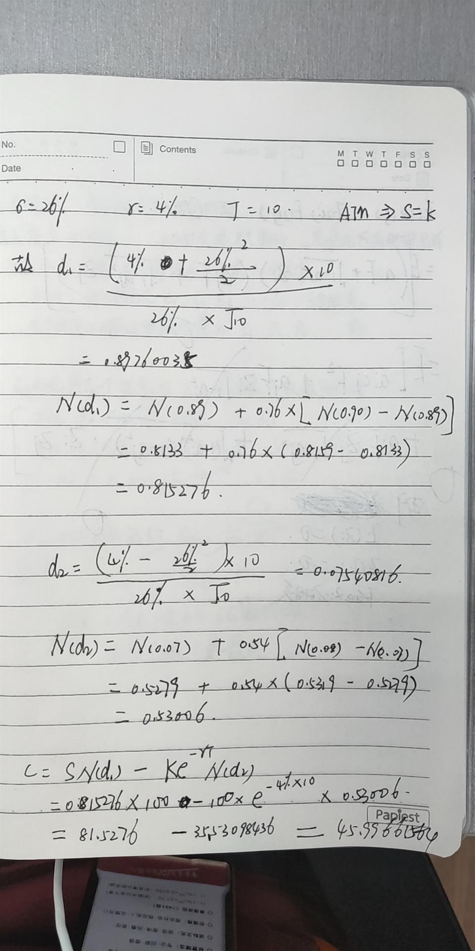 期中看涨期权c的价格计算如下