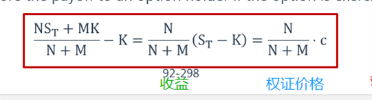 期权持有者行使期权所得收益为(NS_T+MK)/(N+M)-K