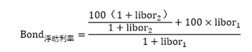 要算浮息债的价值,就是未来现金流求和,在这里不能把2时刻的现金流直接折现到0时刻,因为在0时刻投资者不知道投资者2时刻支付的现金流是多少,投资者只有在1时刻才能知道,所以,直接计算期初价值是不现实的,投资者在计算浮息债价值的时候,要用一个迂回的方式,先折到1时刻,在1时刻的时候投资者可以知道1-2时刻的利率,再加上1时刻的利息现金流,再折到0时刻,所以浮息债的价值计算,是用先折一期再折一期的方式计算出来的,一般用一般复利来进行计算。假如说投资者现在要计算浮息债0时刻的价值,浮息债的价值:如图12