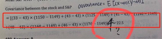 同学你好,这题是默认权重一样,但因为是样本(只给了一周的股价),所以相比于总体是除以n,样本是除以n-1,不管算方差还是协方差,样本都是除以n-1。