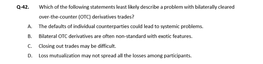 对啊,我理解也是,但如果是场外的怎么会因为个人的违约导致系统性风险呢,A选项为什么不能选呢?我感觉只有在场内损失共担机制下才会因为一个人违约导致系统性风险吧。