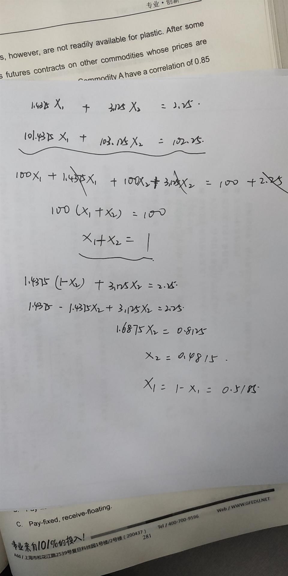 老师,债券复制。比如两个债券复制一个,那这俩的权重之和一定要等于1吗?这题我的解题过程如下,为啥解出来不等于1和答案也不一样。。