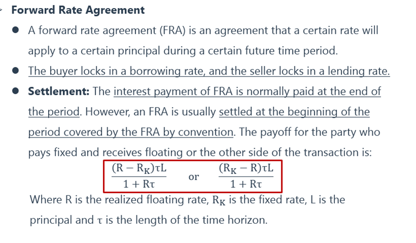 FRA的payoff比较特殊,实际上我们说到FRA的payoff,就是在说他的settlement。也就是对未来收益折现到settlement时点也就是1时刻。