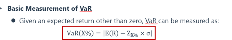 ER-Z*sigma的绝对值,如图,这个形式是百分比的var,其中ER是收益率,在没有提及的情况下,默认收益率er=0