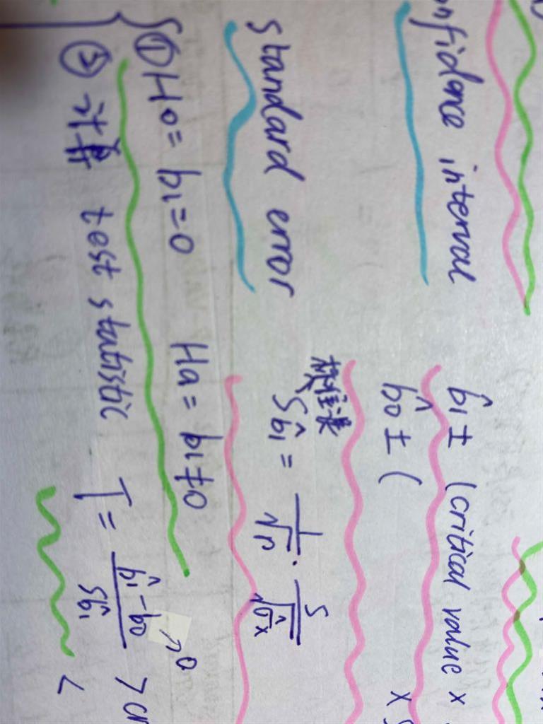 下面这个是线性回归中的标准误,公式是不要求掌握的,题干基本上是都会直接给数值,如果涉及到要算标准误的,基本上都是考察上面那个公式。