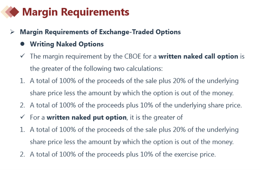 1:卖出期权所得金额的100%,加上20%的标的股票价值,减去(如果存在)期权的虚值。