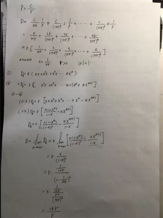 麦考林久期:如下:(1+r)/r