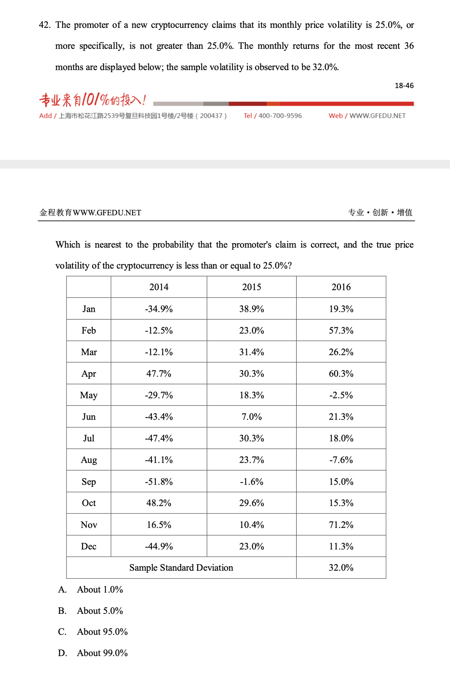 老师,42题,如果算出来卡方是老师黑字写的57.33,那是不是还是选a,就是1%,因为是最接近的概率