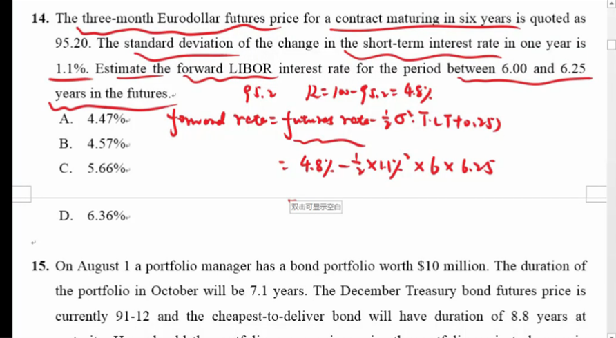 试卷2第14题,教材里算凸性调整是时使用CC,为什么这里没有折算?