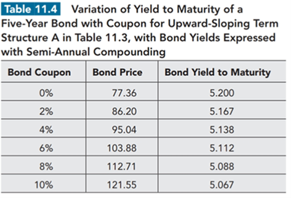 同学你好,咱们可以这样想,在downward sloping的情况下,说明前期的利率是比较高的,如果这时候提升coupon的话,就意味着我们前期收到的现金流增多,这时候我们要去市场上进行再投资的,而这时由于前期的利率是比较高的,说明我们的再投资收益也是比较大的,这样,整体的YTM就上去了呀