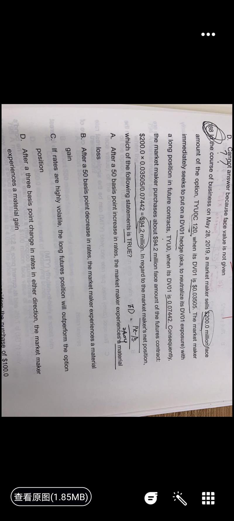 个人觉得应该是看跌期权,因为题目里面有一个put,如果做是做空看涨期权的话,当债券价格下跌,卖出看涨期权的人不是应该赚钱吗,赚的是期权费,和期货正常下跌相比,应该也比不了吧?所以说这里面的做空看涨期权和做空看跌期权还是不一样的吧?