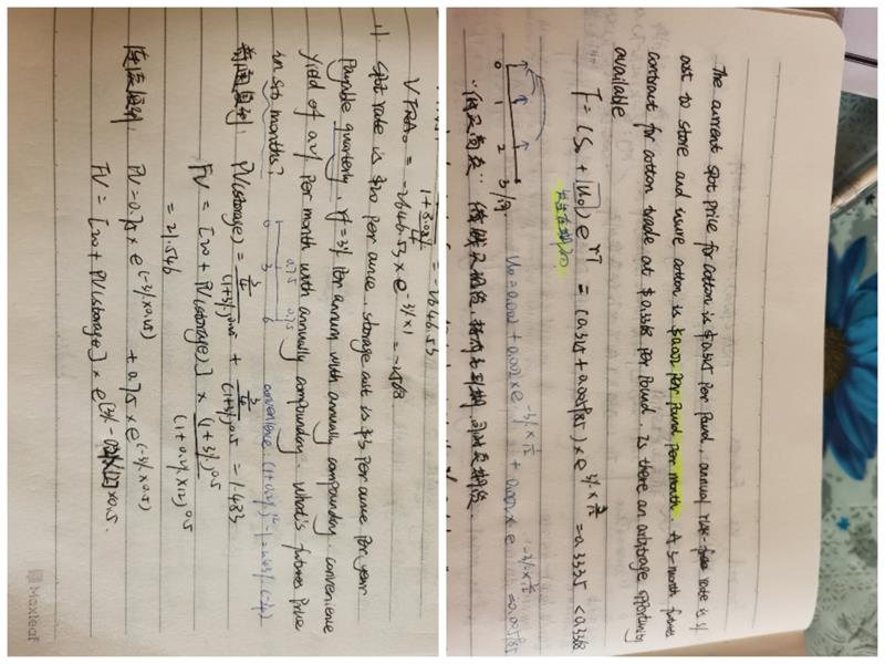 不是的,我的第一个问题的意思是它储存成本有的是从零时刻开始,就是0.002那个,然后后面的一点一点往前折现。而第二个是从三个月和六个月开始折现到零时刻,这种问题题目是否应该会有说明储存成本从什么时候开始算起?