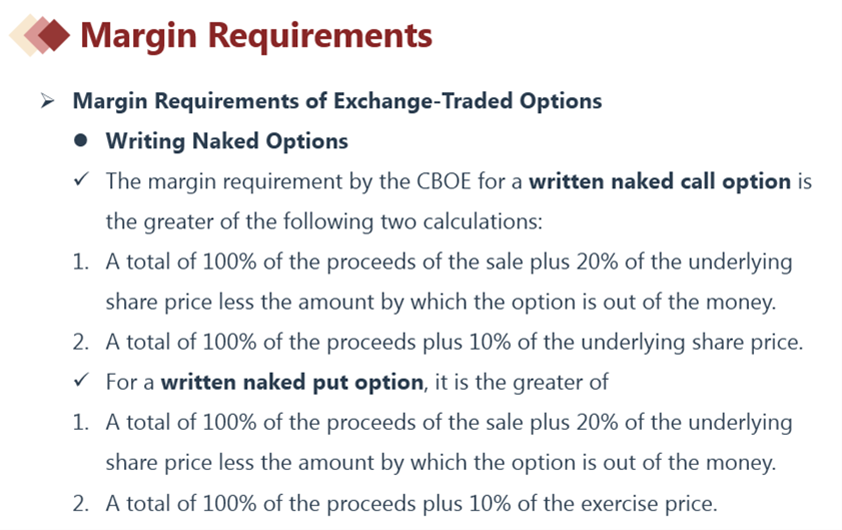(1)卖出期权所得金额的100%,加上20%的标的股票价值,减去(如果存在)期权的虚值。