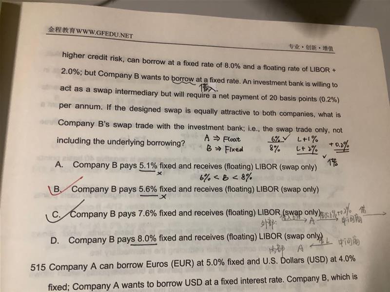 这题给的选项中浮动利率是L