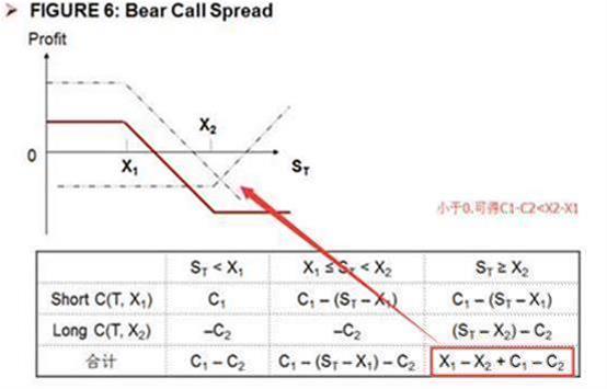 A:相同期限的美式看涨期权之间的价格差异不会超过它们执行价格之间的差异(我们用价差原理去分析:因为无红利的American call和European call是一样的。综合下面这个图形,A选项正确)
