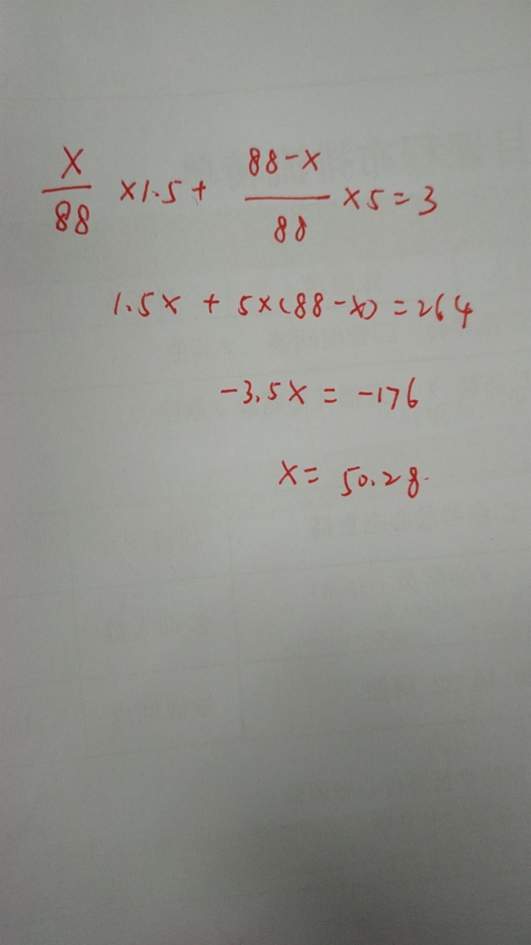 同学你好,这位投资者手里有88m的债券,这些债券的久期是5,现在他想卖掉一部分的债券,再买入一些新的债券,新债券的久期是1.5,使得组合整体的久期达到3,所以我们设未知数,我们假定卖掉的债券的价格是X,列出如下方程,可解出D答案