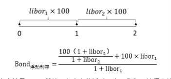要算浮息债的价值,就是未来现金流求和,在这里不能把2时刻的现金流直接折现到0时刻,因为在0时刻投资者不知道投资者2时刻支付的现金流是多少,投资者只有在1时刻才能知道,所以,直接计算期初价值是不现实的,投资者在计算浮息债价值的时候,要用一个迂回的方式,先折到1时刻,在1时刻的时候投资者可以知道1-2时刻的利率,再加上1时刻的利息现金流,再折到0时刻,所以浮息债的价值计算,是用先折一期再折一期的方式计算出来的,一般用一般复利来进行计算。假如说投资者现在要计算浮息债0时刻的价值,浮息债的价值:最终算出来就是100,所以,推而广之可以得出第一个结论:如果现在是在付息日,付息之后,浮动利息债券的价值一定等于它的面值。