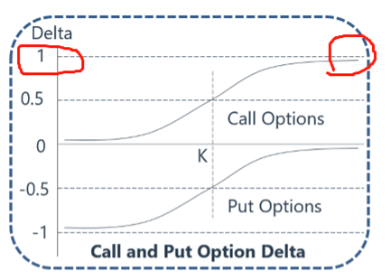 同学你好,确实是这样的,对于deep in the money的期权,delta取值是趋向于1的,如下图所示