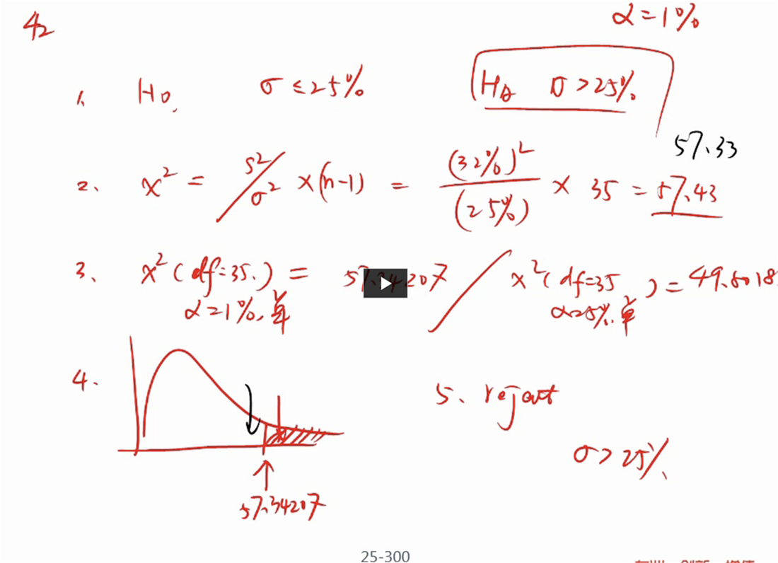 同学你好,这题其实就是:假设检验置信区间的综合知识。使用的是卡方去计算检验统计量然后根据检验统计量与关键值进行比较。