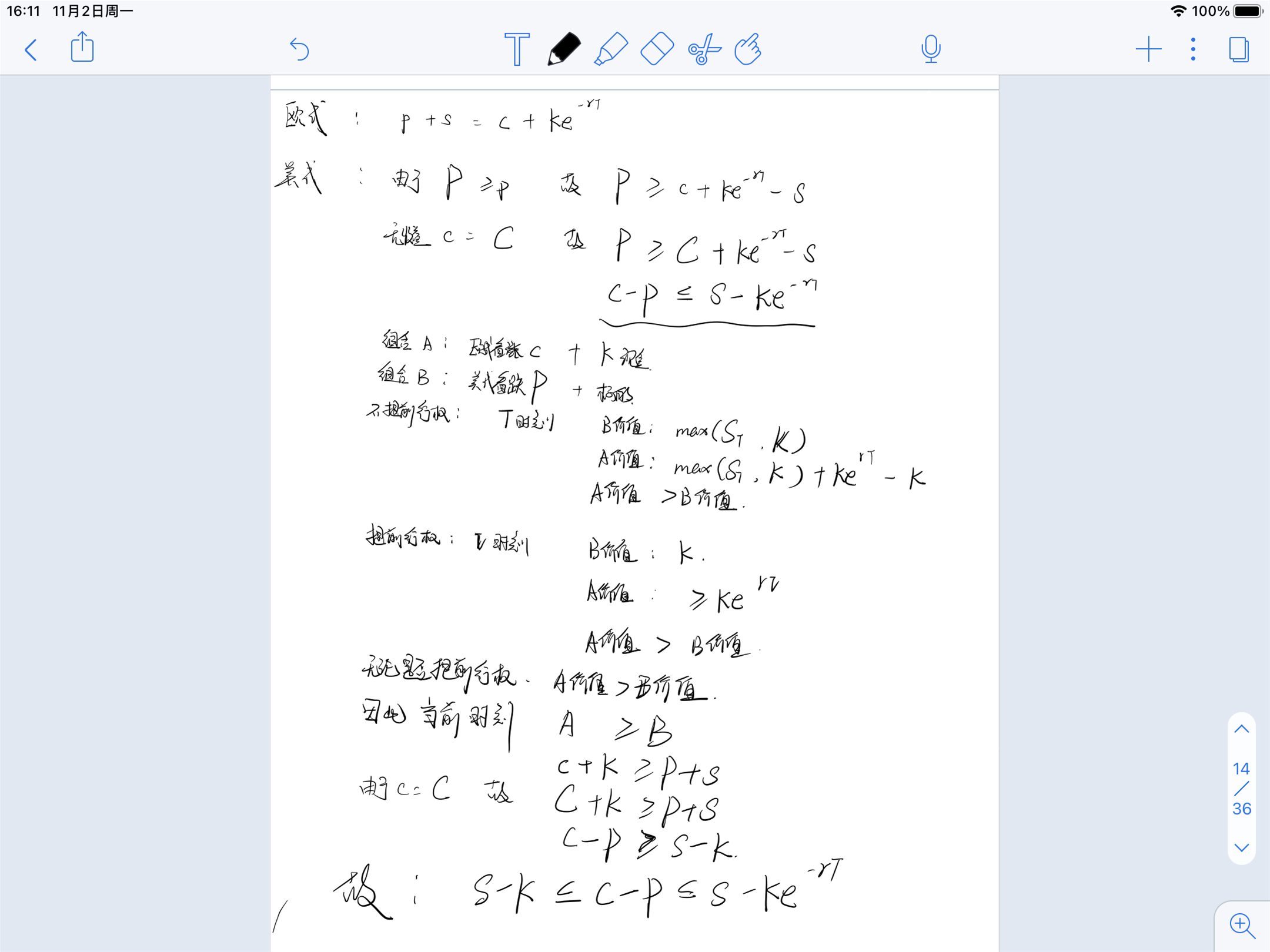 这题实际上是问:美式看涨与美式看跌的差,这个差的上限和下限分别是多少。