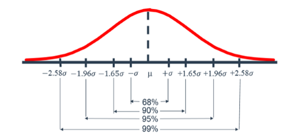 同学你好,双尾的分位点请看下图,单尾的话,95%是1.65,99%是2.33,VAR的计算是单尾的