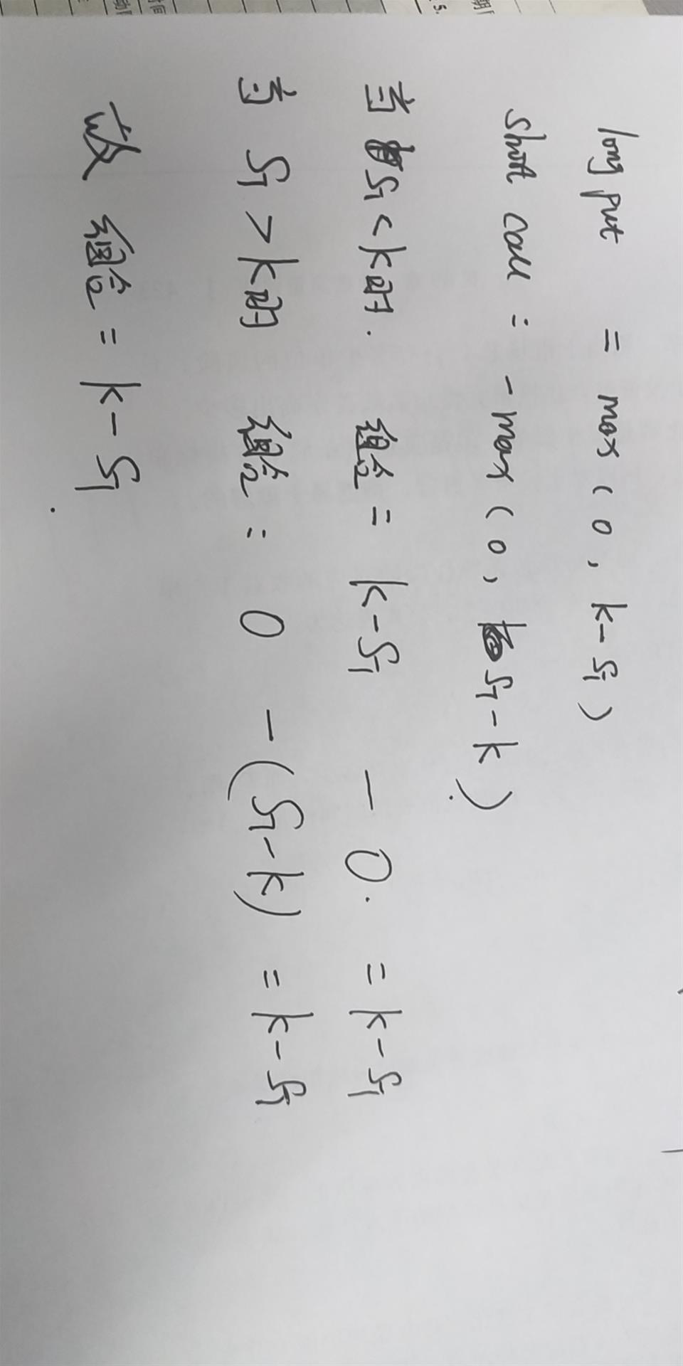 这是分段函数:一段是ST小于K,其收益是K-ST
