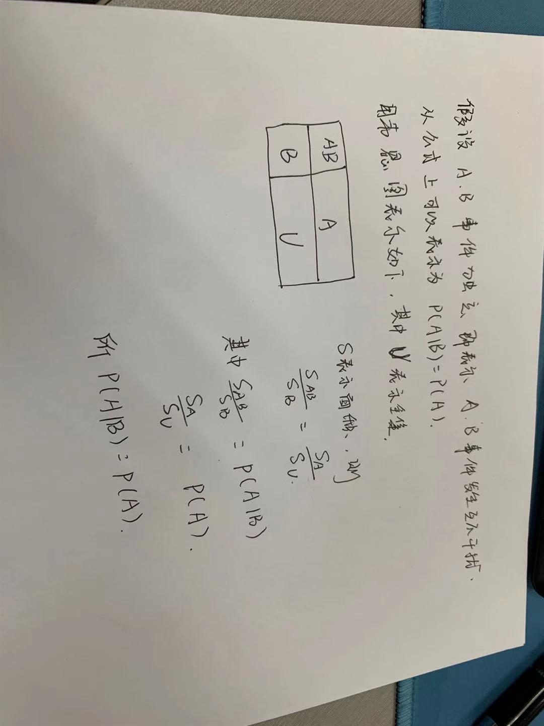 根据老师的公式,Sab/Su=Sa*Sb/Su²,正好是P(AB)=P(A)P (B)
