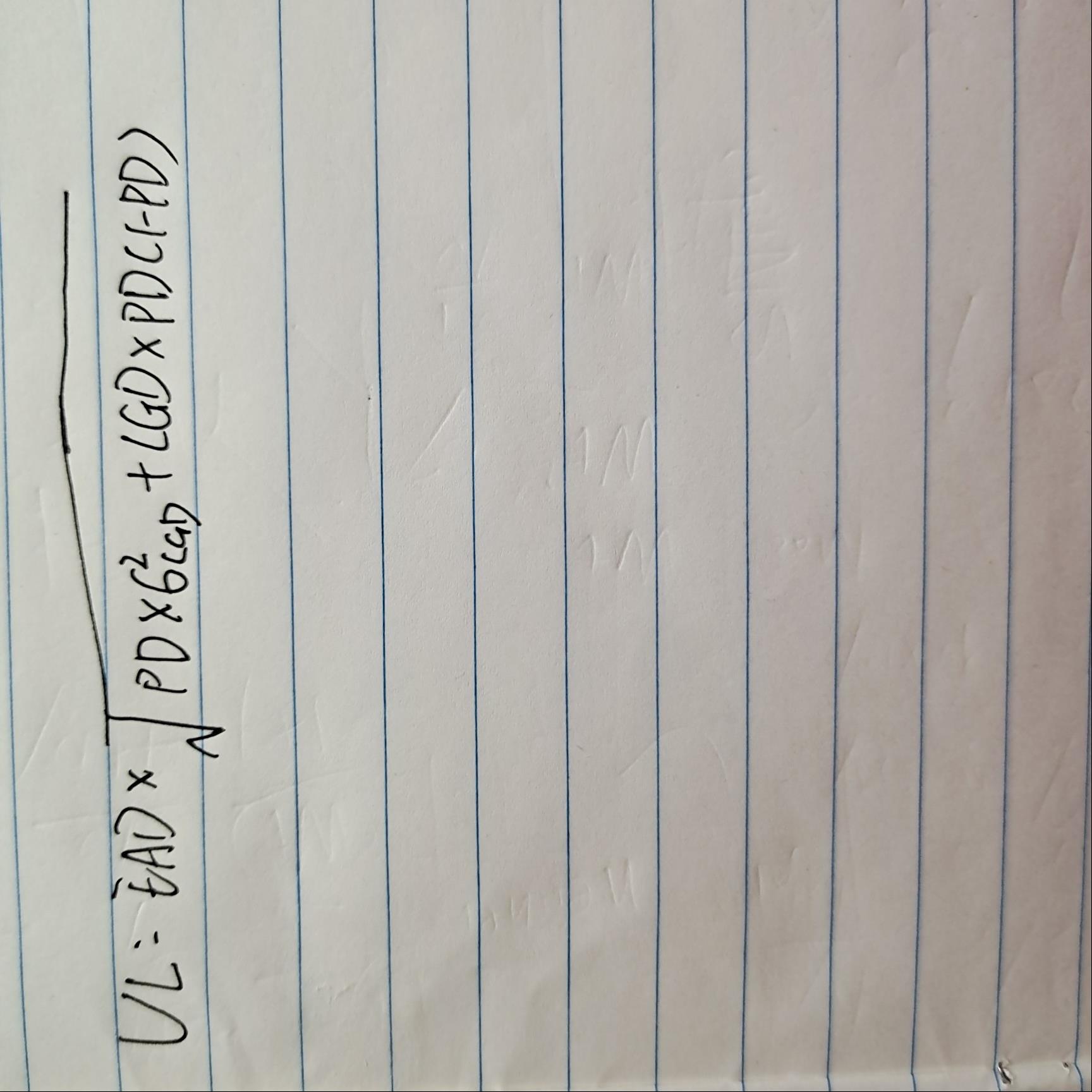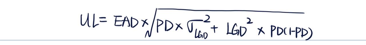 同学你好,UL公式基本不会考,你写的掉了一个平方,应该是LGD^2*PD*(1-PD)