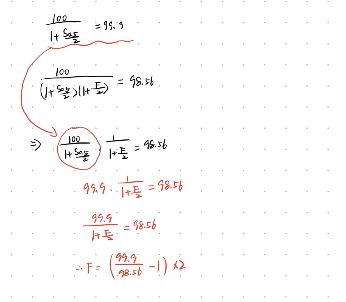 请问老师,习题集743,为什么答案直接用R(0.5)*(1+F/2)=R(1),不是(1+R(0.5))^0.5*(1+F)^0.5=(1+R(1))?