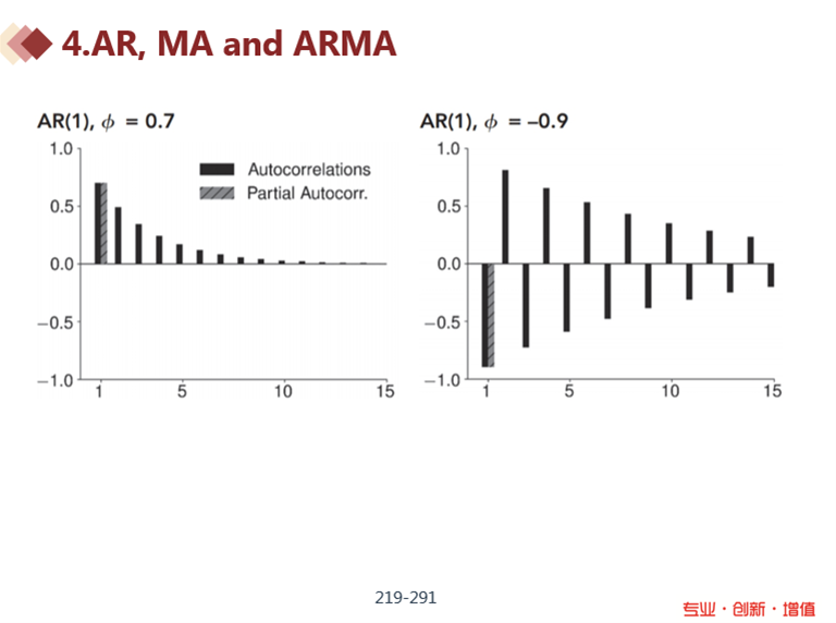 同学你好,这句话说的是这页讲义的内容,如果系数为正的情况,那么AR模型的ACF为正数,逐渐递减。如果系数为负,那么AR模型的ACF是正负交叉,逐渐递减的。